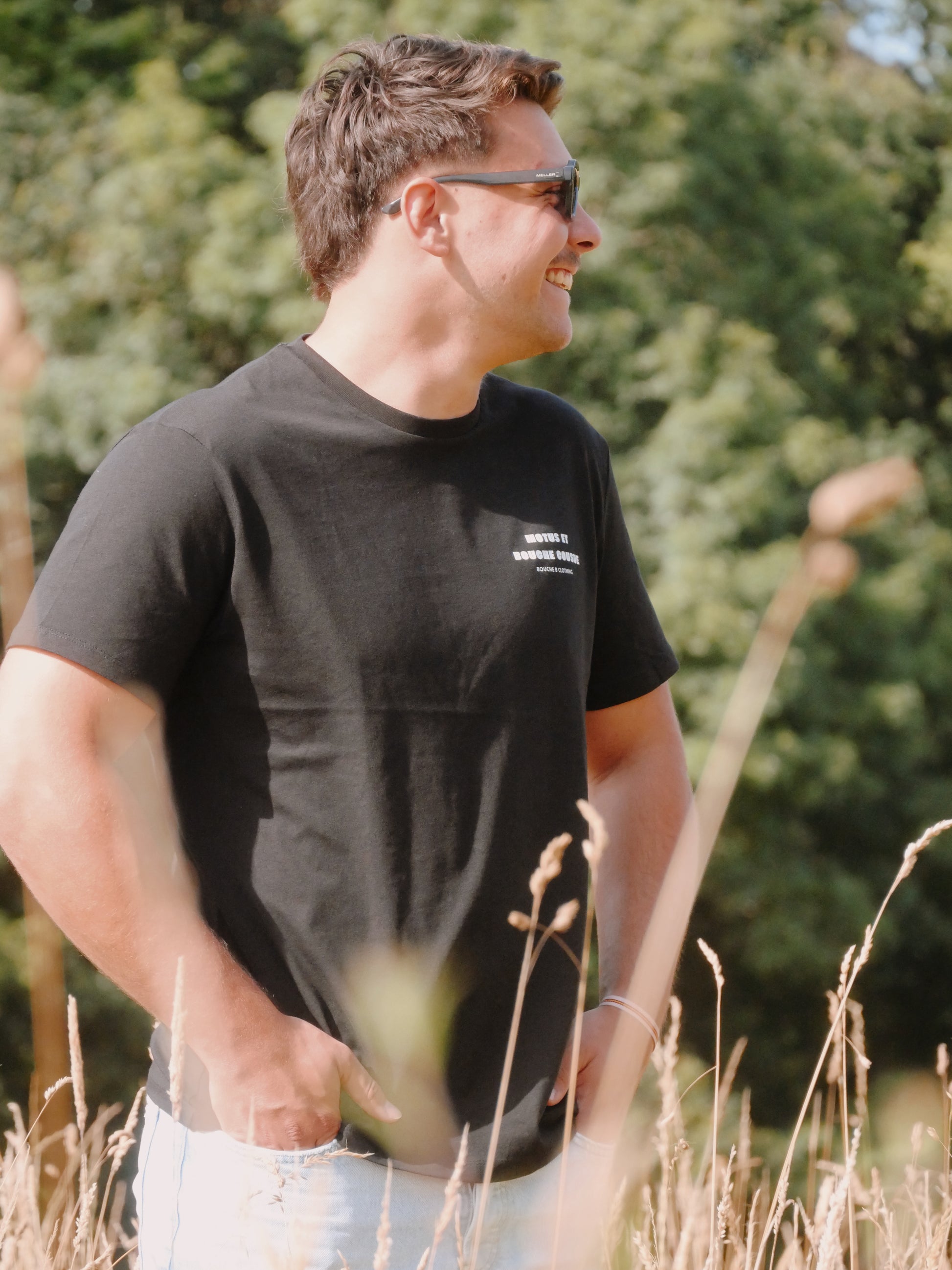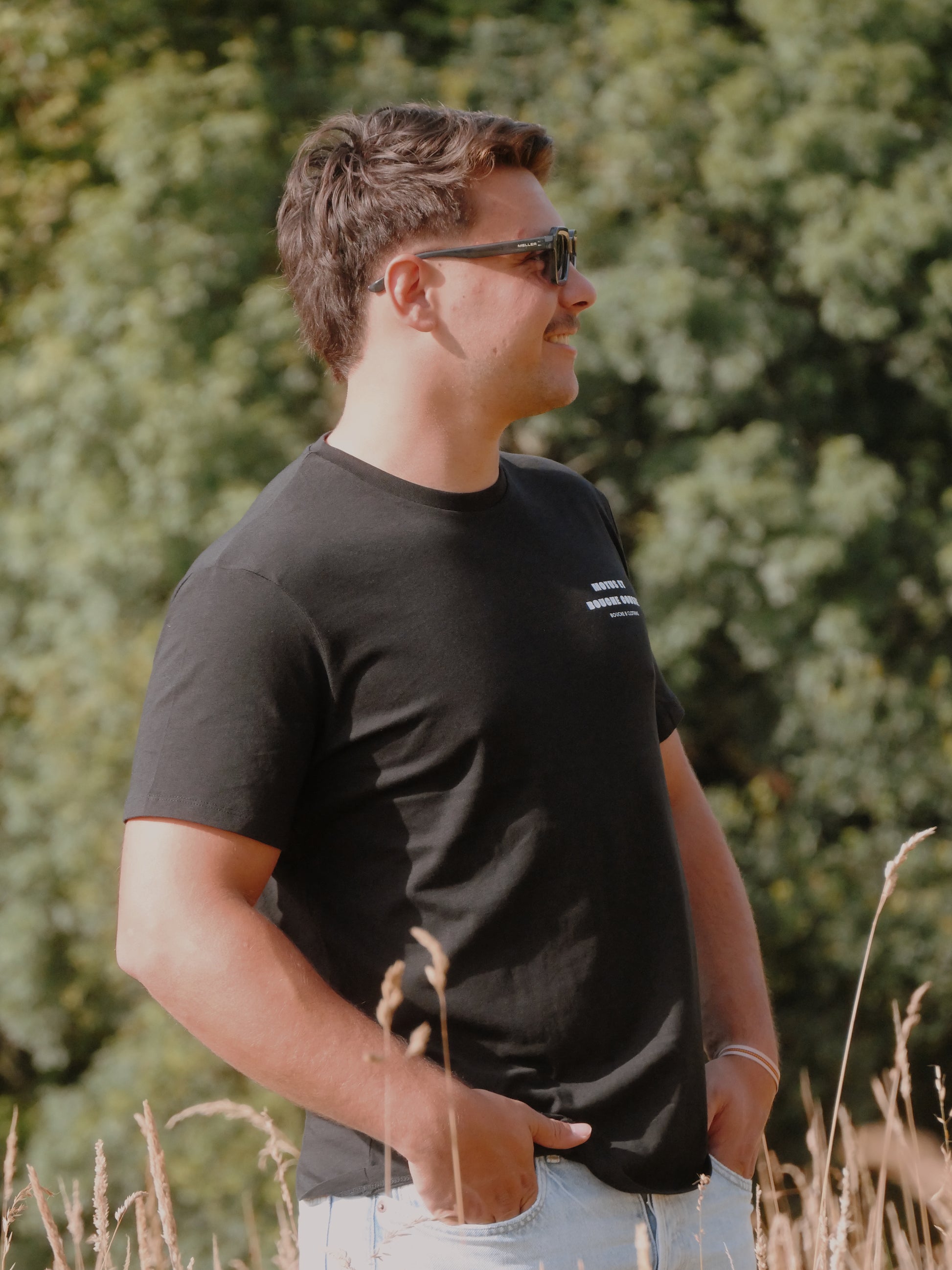 Découvre notre tee-shirt noir en coton bio "Motus et Bouche Cousue", parfait pour ceux qui savent garder un secret tout en restant incroyablement cool.